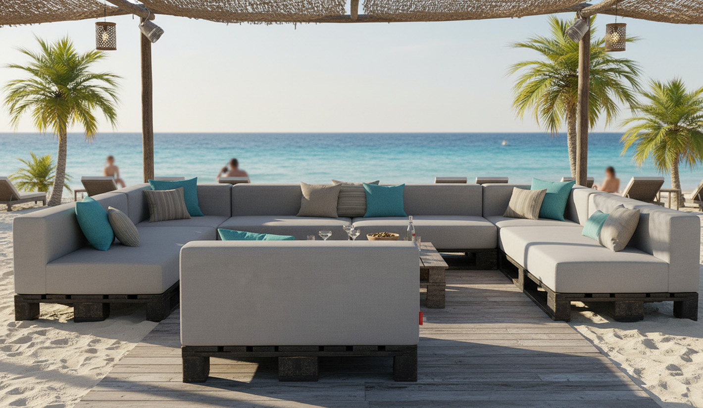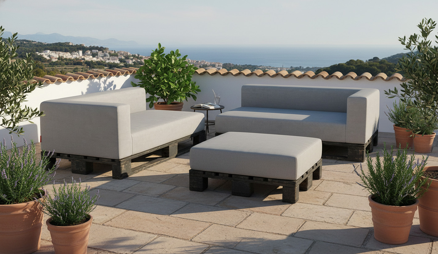 Este cojín para palet con brazo derecho está diseñado para convertir un palet europeo estándar en un sofá moderno, cómodo y totalmente funcional. Con asiento, respaldo y un brazo lateral derecho integrados en una sola pieza, ofrece una estética limpia y un nivel de confort superior ideal para terrazas, jardines, chill out, hostelería y espacios interiores.